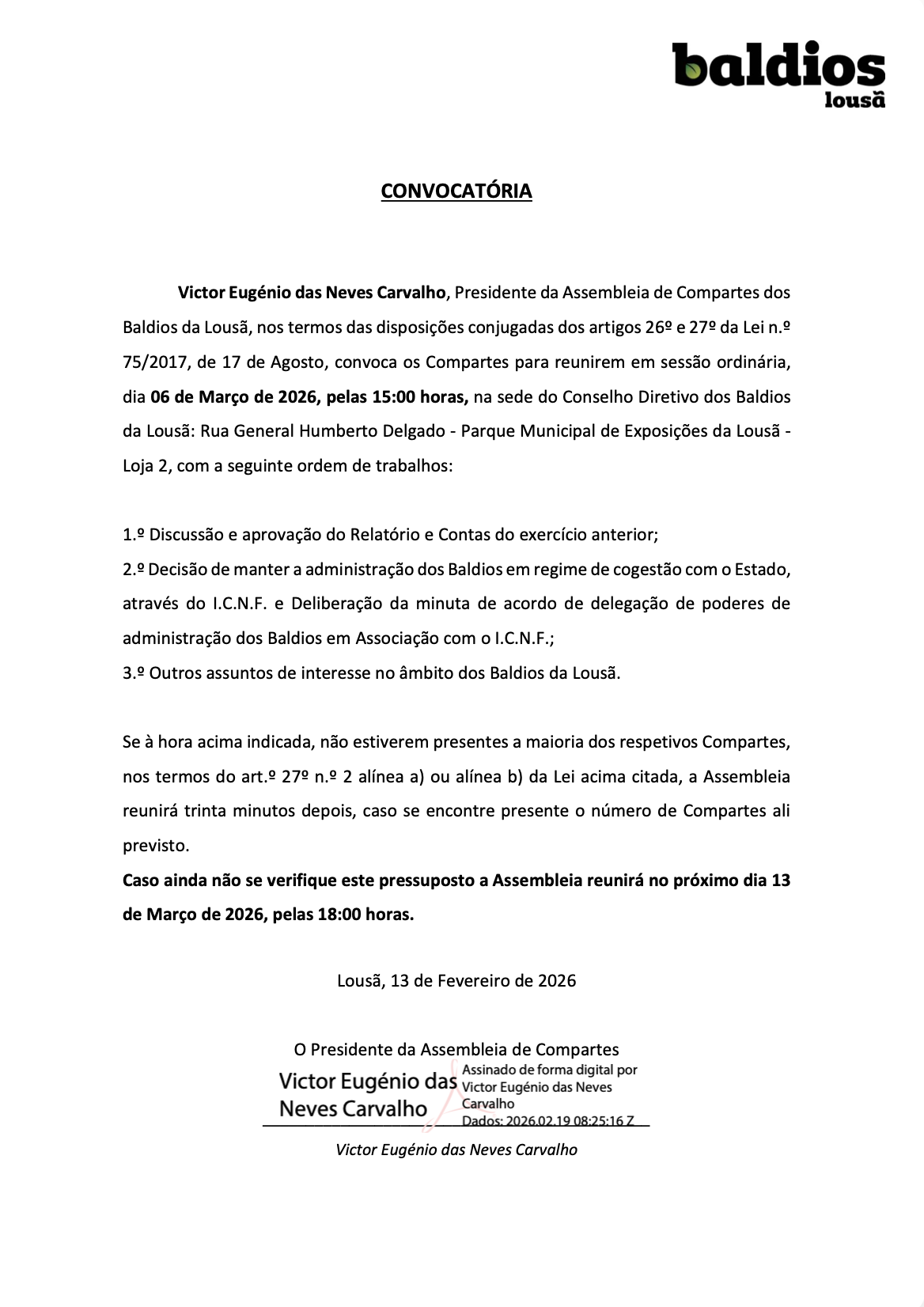 Relatórios de Contas e Convocatórias